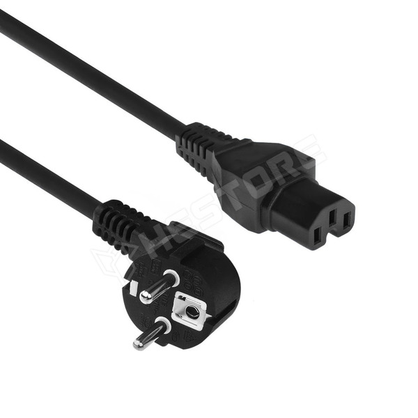 AK5313 / Kábel, 90°-os hálózati csatlakozóval, CEE7/7, IEC C15 anya, 230V AC, 10A, fekete, 2m (ACT CONNECTIVITY)