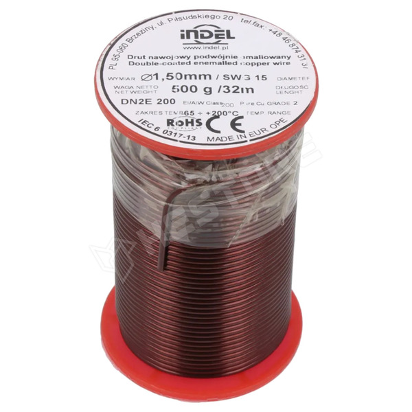 Tekercselő huzal, duplán zománcozott, -65...200°C, Ø1.5mm, 0.5kg